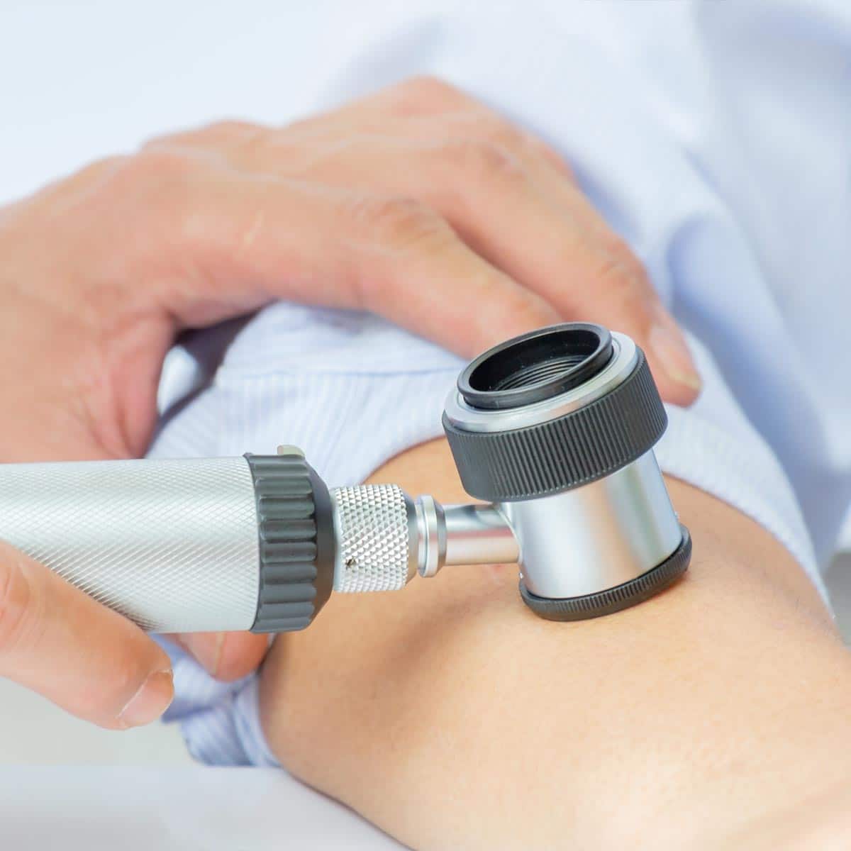 In the case of moles in particular, the dermatoscope can be used to more clearly assess features such as an uneven pigment network structure, gray-blue or white veils, pigment splattering or asymmetrical shapes.